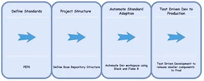 Like any other programming language, we started by defining our source of truth for standards. We went with PEP8 which is the standard that defines Coding Style Guides for Python. We went through the below key stages from Planning to Production.