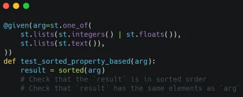 Imagine that you needed to test the sorted() builtin. With a traditional set of unit tests, you can write a bunch of cases with the expected inputs and outputs: